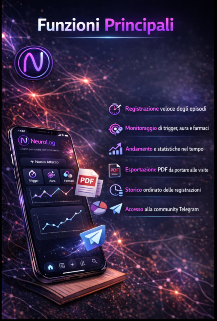 Entra nella community Telegram di NeuroLog per confrontarti con altri utenti, condividere esperienze, proporre idee e restare aggiornato sui prossimi miglioramenti dell’app.